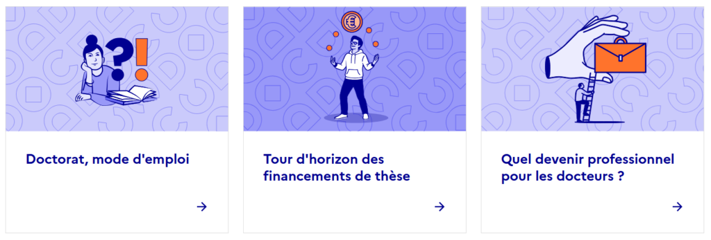 Avec des rubriques indiquant l’avant, le pendant et l’après du doctorat, il est notamment possible de trouver :