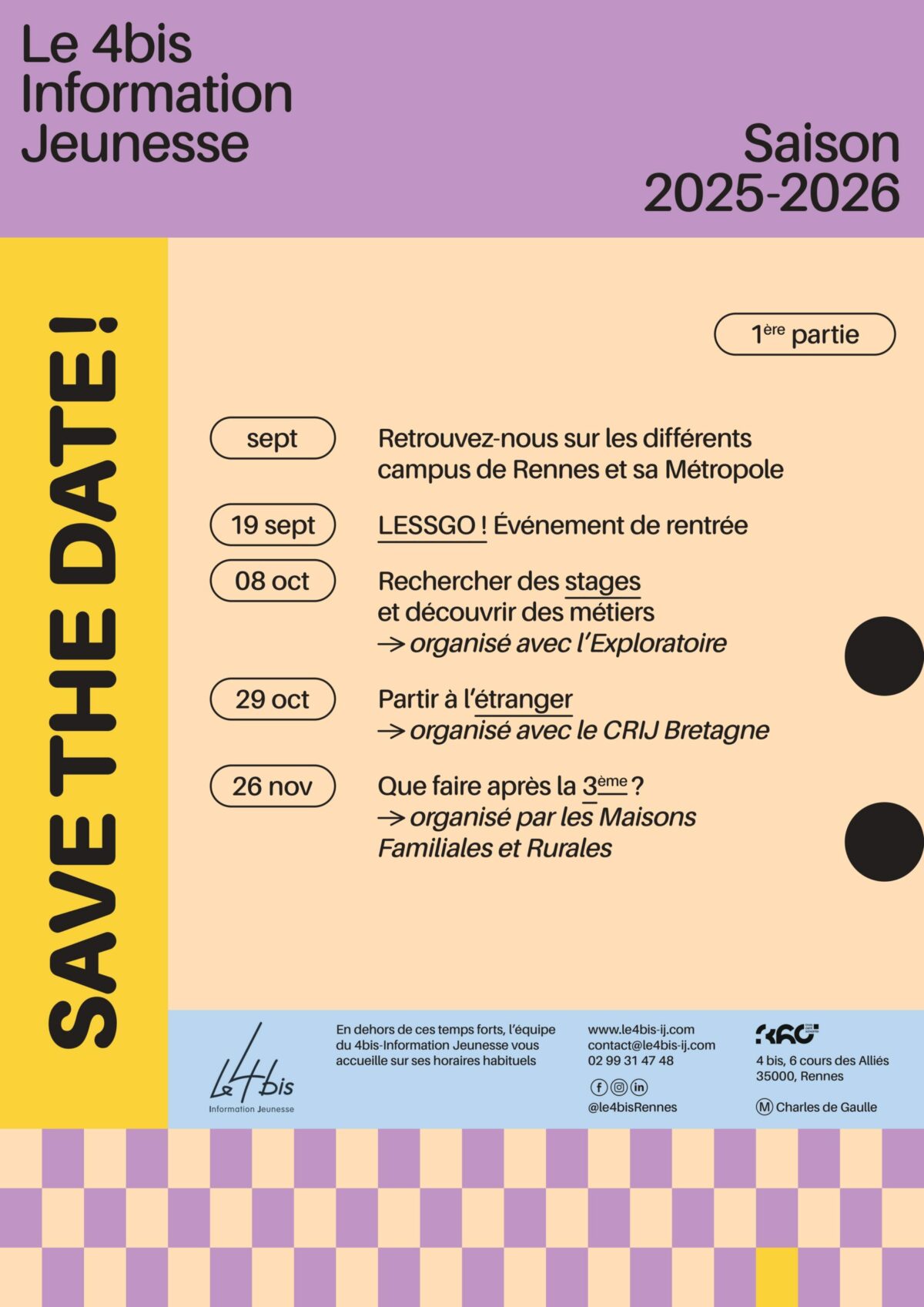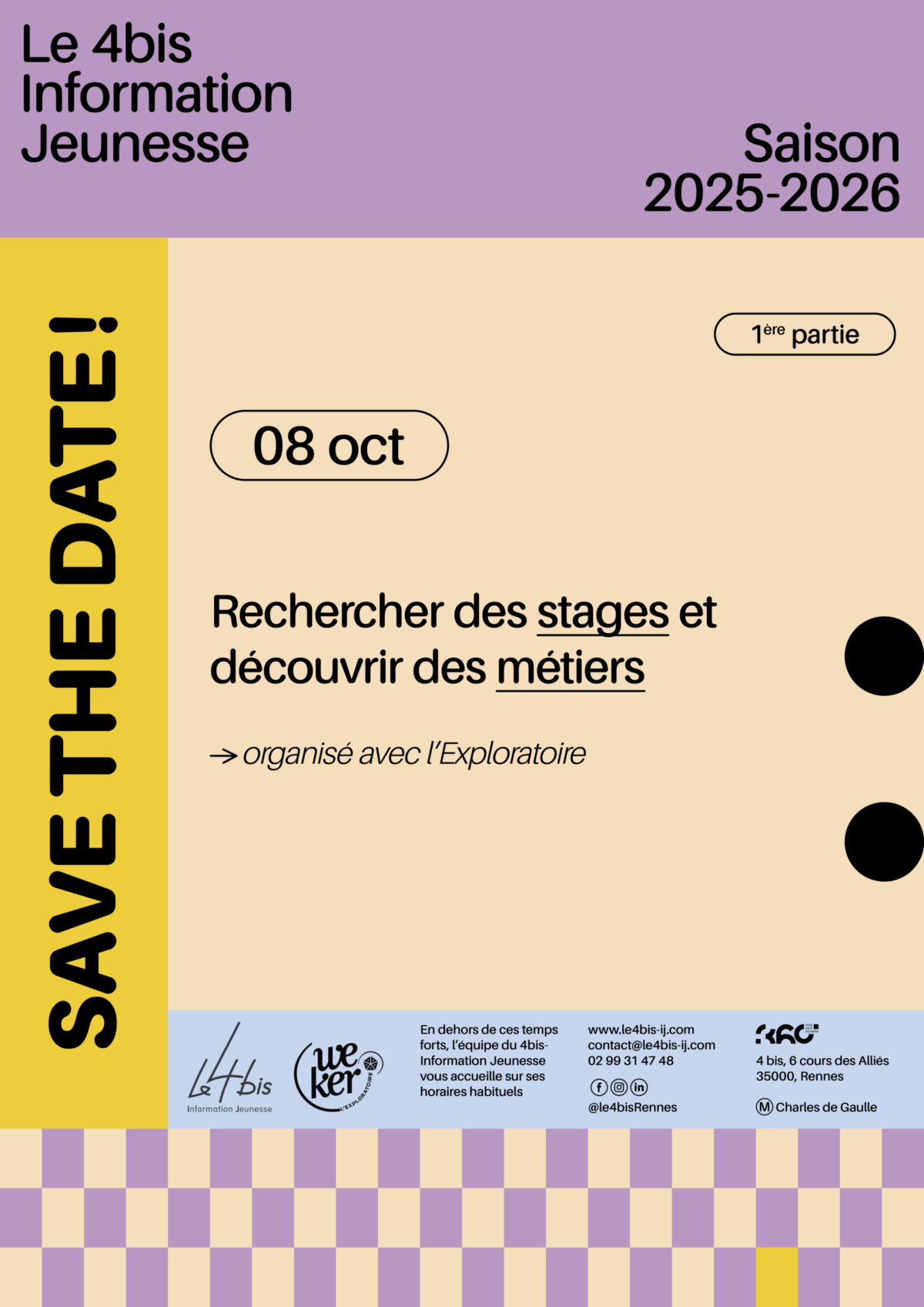 Comme chaque année, nous nous déplaçons ce mois-ci et début octobre dans les universités et écoles de Rennes Métropole pour rencontrer les étudiant·e·s et les professionnel·le·s ! Surveillez nos réseaux pour trouver nos stands.