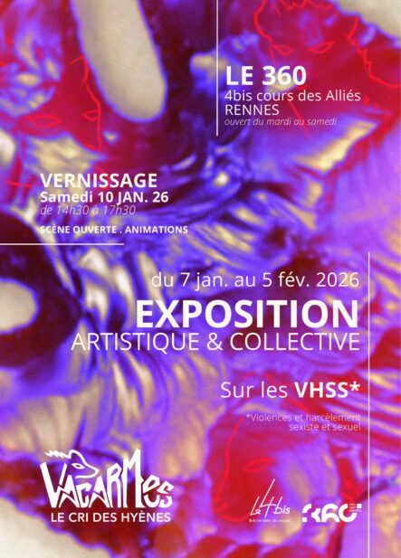 Le collectif @vacarmes_rennes organise sa deuxième édition de l’expo “Vacarmes – le cri des hyènes” au Café à Projets du @360_rennes du 8 janvier au 5 février.